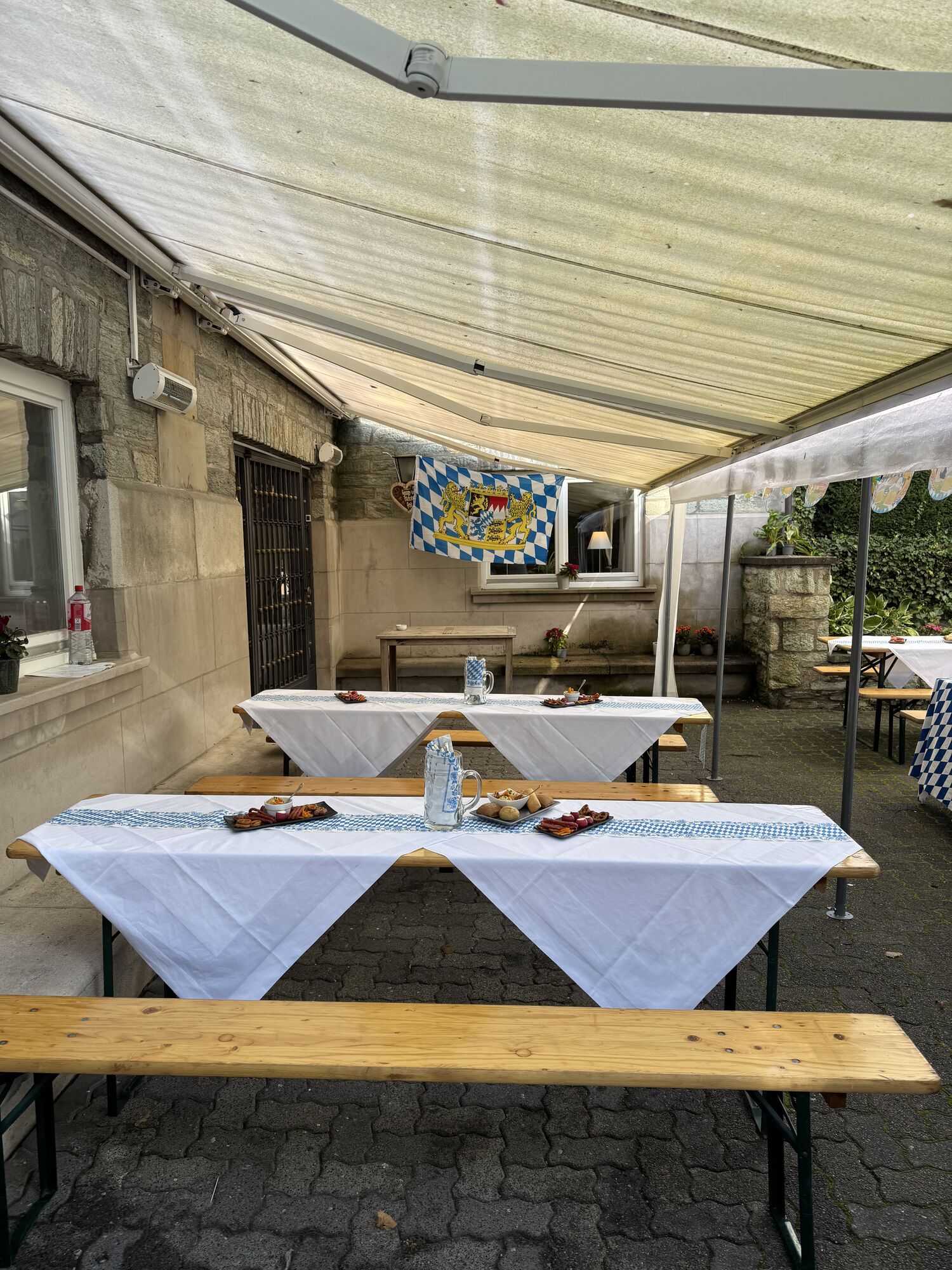 Im Anschluss an das Turnier kamen alle Teilnehmer in Dirndl und Tracht auf der Terrasse zum bayerischen Buffet zusammen.